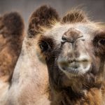 Trump im Zoo, liest auf der Infotafel vor dem Kamelgehege: