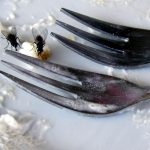 wo neben Kuchengabeln Reste