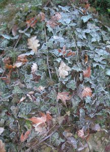 Der Raureif ziert den Efeu sacht,